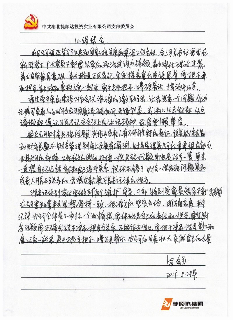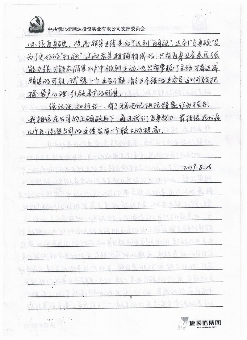 1、談心得體會(huì),本月捷順達(dá)“支部主題黨日”活動(dòng)《心得體會(huì)》評(píng)選,請(qǐng)大家認(rèn)真聽(tīng),然后評(píng)出三位優(yōu)秀者進(jìn)行獎(jiǎng)勵(lì)