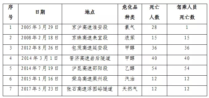 2008年以來(lái),全國(guó)各地發(fā)生多起重特大?;返缆愤\(yùn)輸安全事故,其中,2012年“8.26”包茂高速甲醇運(yùn)輸爆炸事故、2014年“3.1”晉濟(jì)高速甲醇運(yùn)輸隧道燃爆事故、2014年“7.19”滬昆高速乙醇運(yùn)輸火災(zāi)事故分別造成的死亡人數(shù)甚至超過(guò)了30人。?;返缆愤\(yùn)輸安全管理問(wèn)題已經(jīng)引起社會(huì)的廣泛關(guān)注。